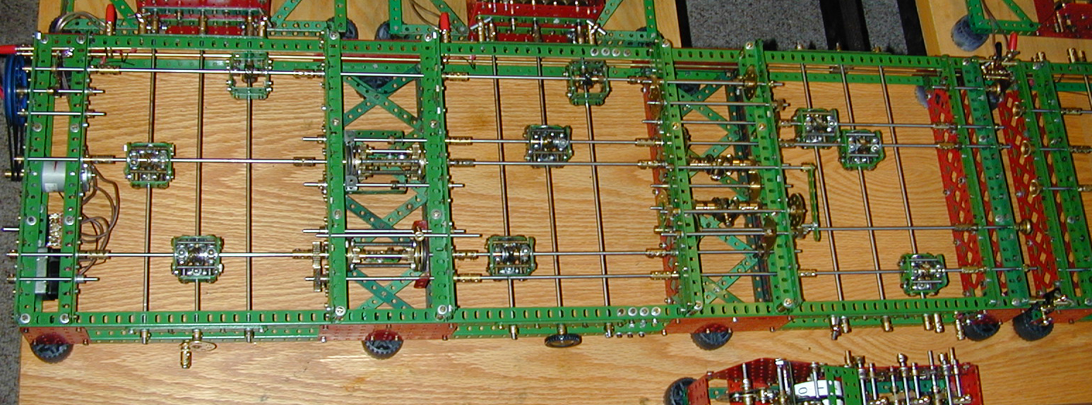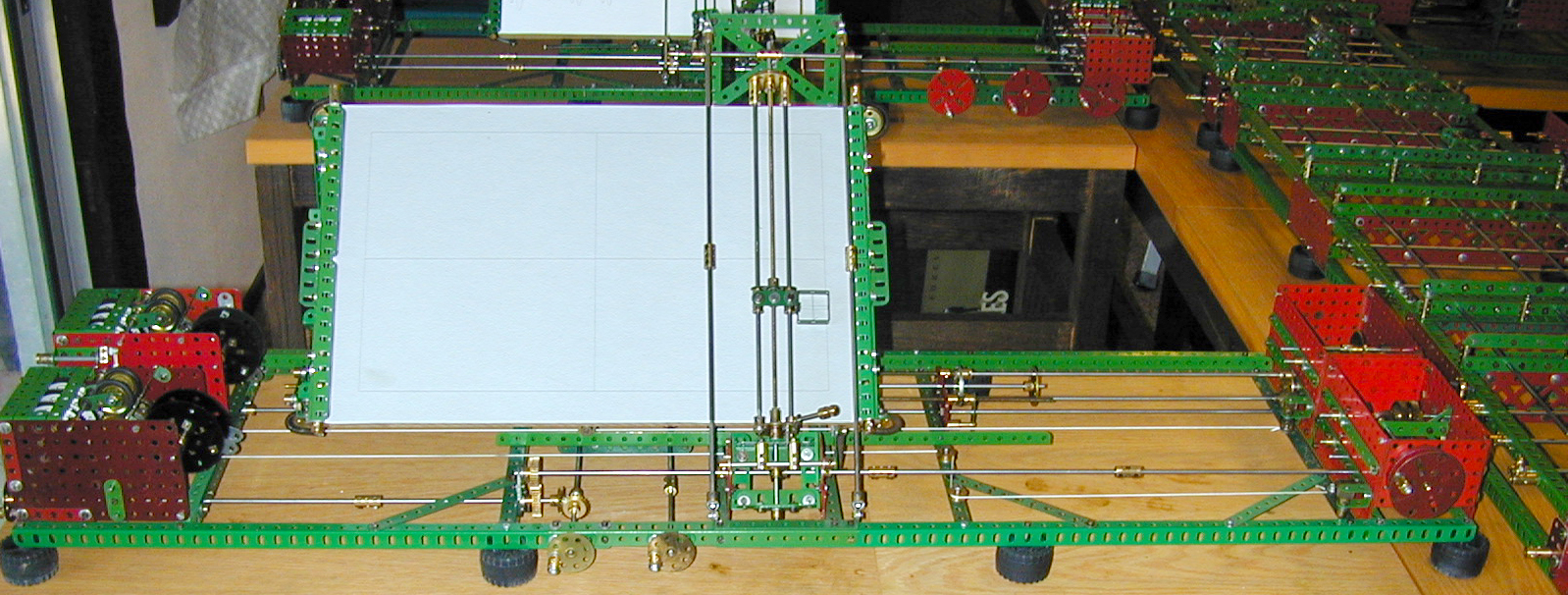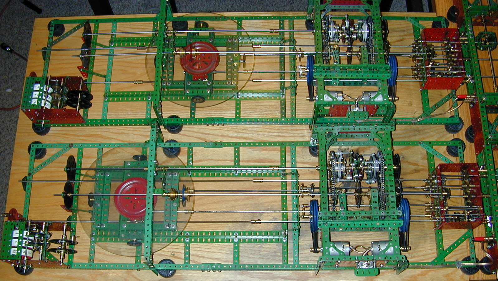 The table arrangements anticipate eventually increasing the machine to six integrators and to add a second input table, also equipped to operate as a multiplier. The wonderful thing about a differential analyzer is that, just as with Meccano itself, you can never have too much, and there are always ways to redesign it to make it even better - so it's a never ending project!