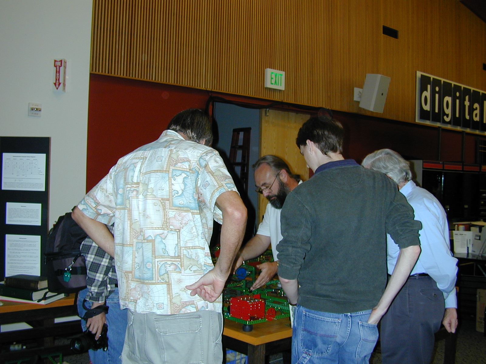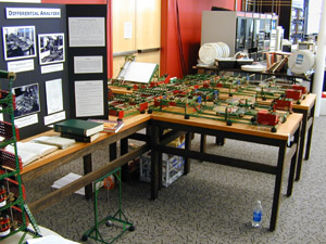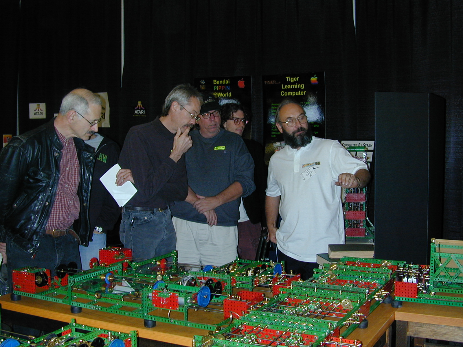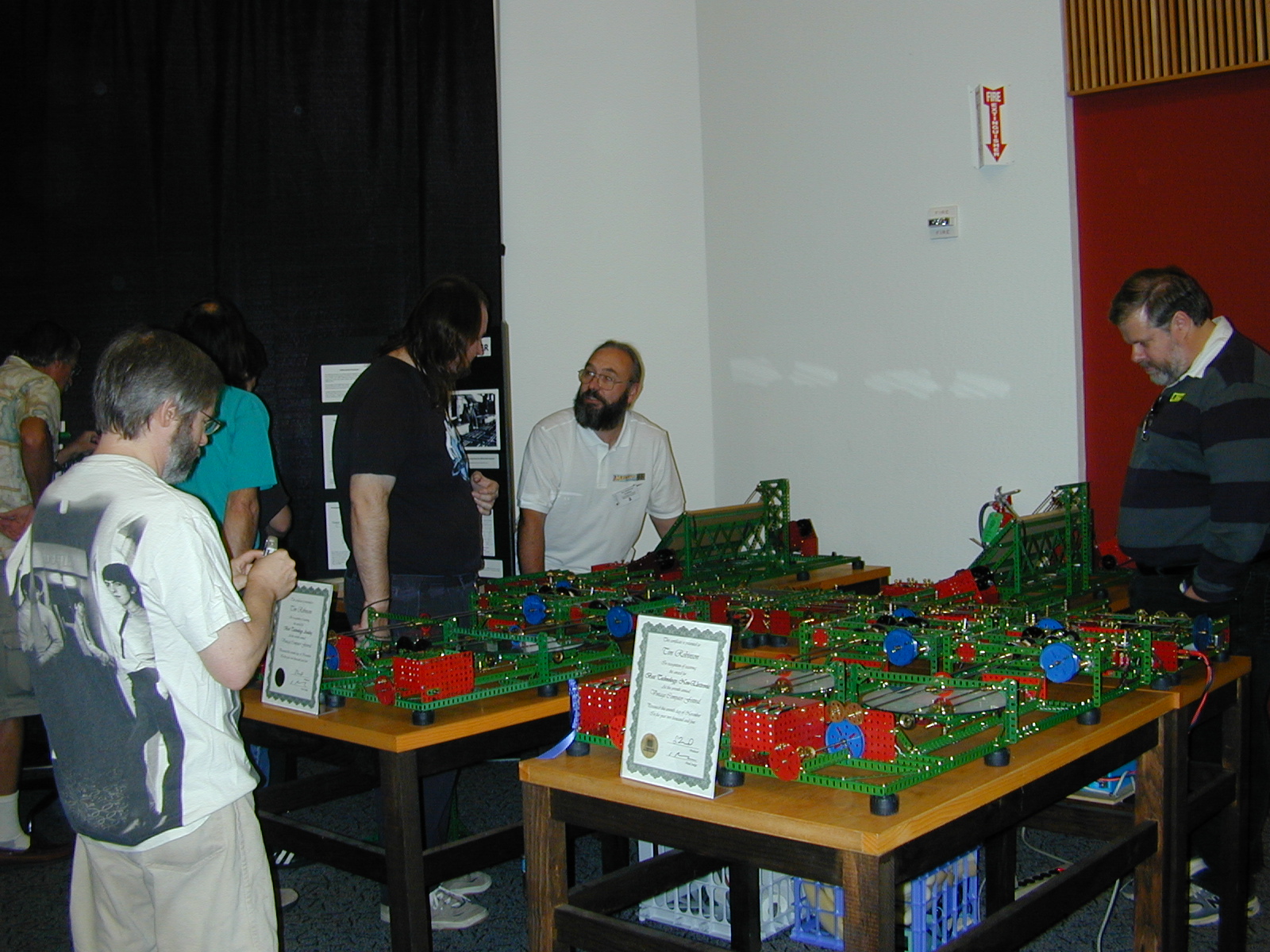 | The Vintage Computer Festival held its 7.0 meeting at the Computer History Museum in Mountain View, California on November 6/72004. I entered the differential analyzer in the "Re-creation, Emulation or Contemporary Enhancement" class where it received first place. It was also awarded "Best technology: Analog" and "Best Technology: Non-electronic". Visitors to the show were able to vote for their favorite exhibit, and the differential analyzer also won the "People's Choice Award". Here is a movie of the machine operating at the show (courtesy of Bill Selmeier): |